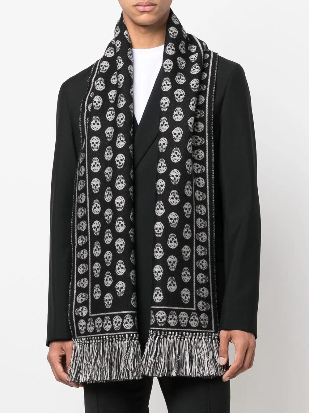 Alexander McQueen skull-knit fringed scarf