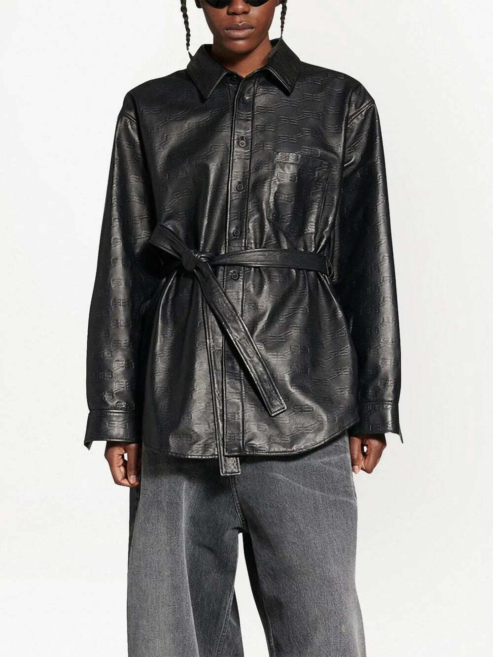 Balenciaga tied-waist leather shirt