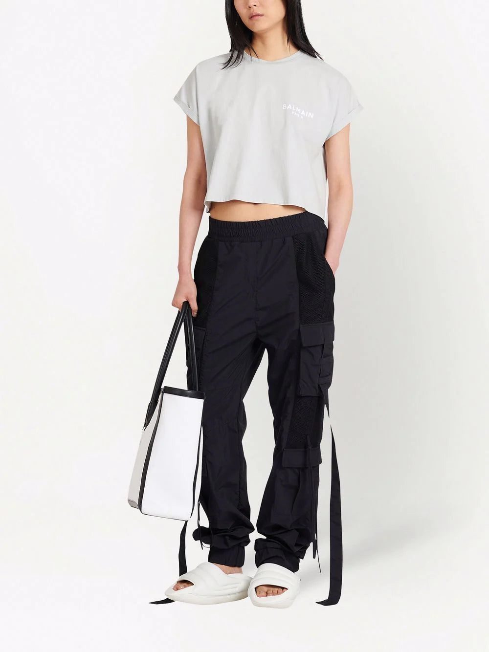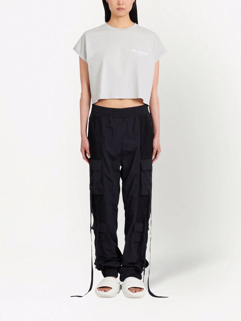 Balmain logo-appliqué cropped T-shirt