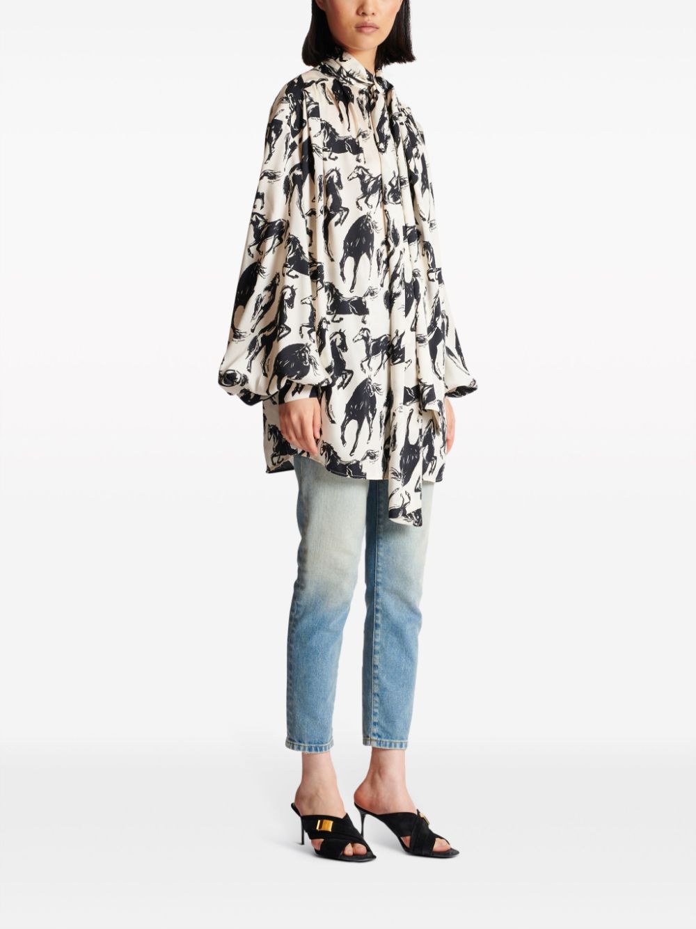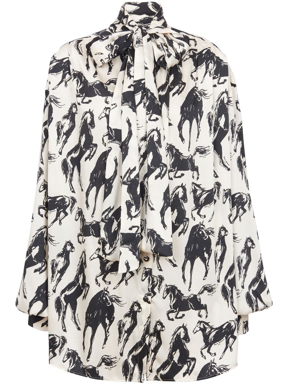 Balmain horse-print pussy-bow silk shirt