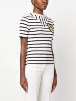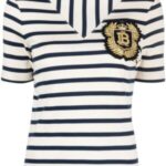 Balmain logo-patch ribbed-knit striped T-shirt