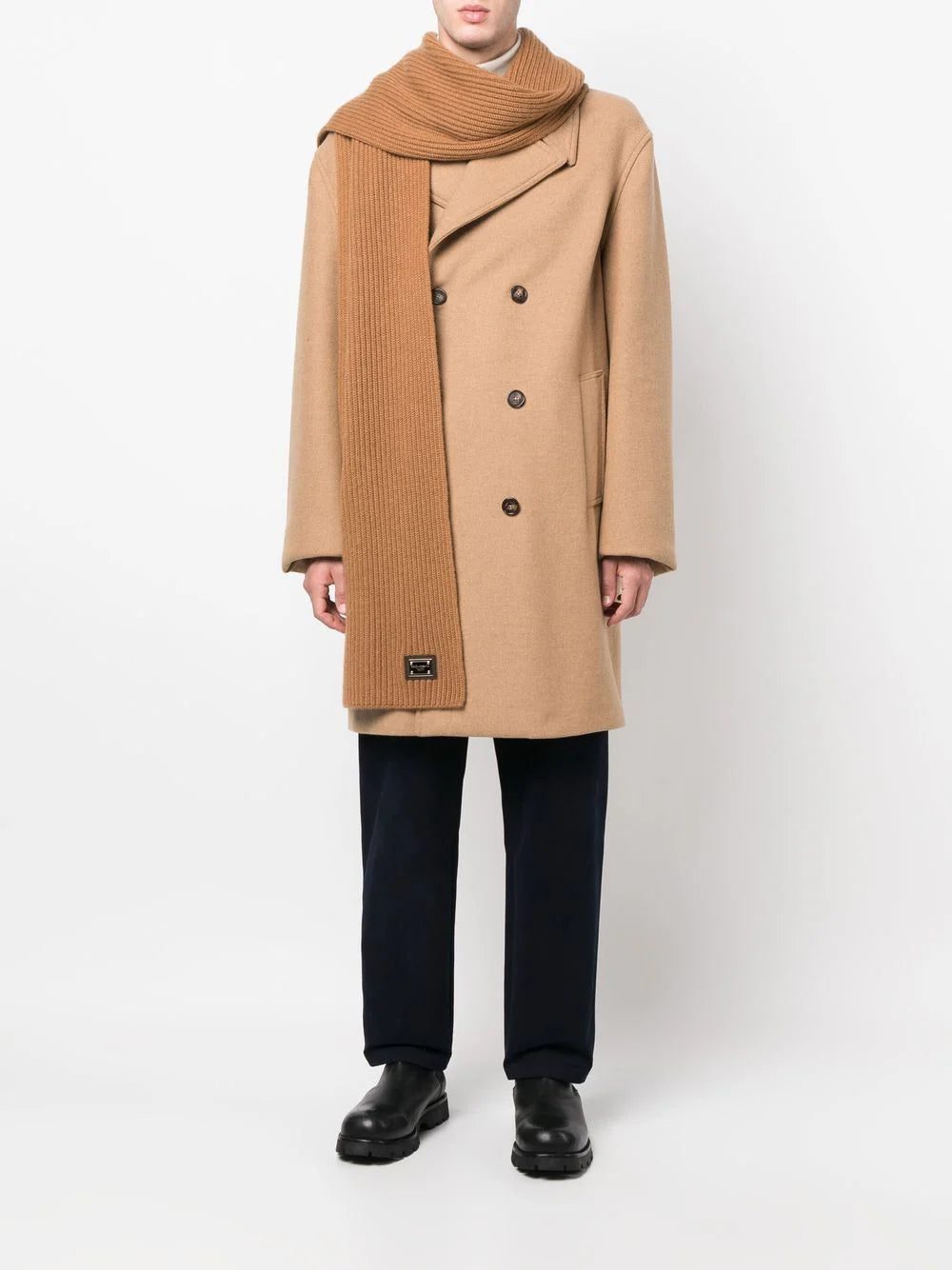 Dolce & Gabbana gold-tone logo plaque cashmere scarf