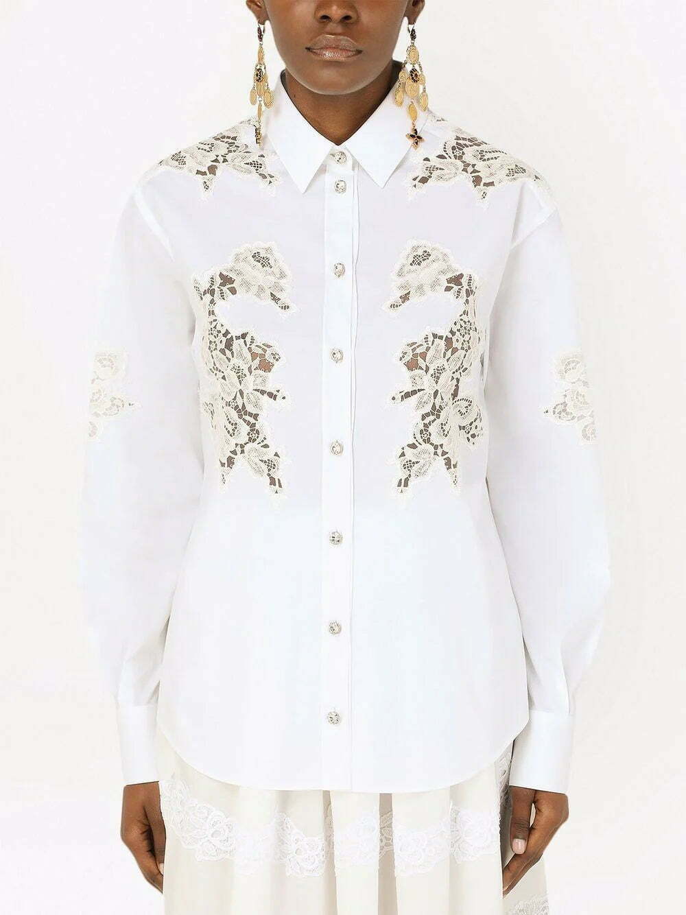Dolce & Gabbana lace-panelled long-sleeve shirt