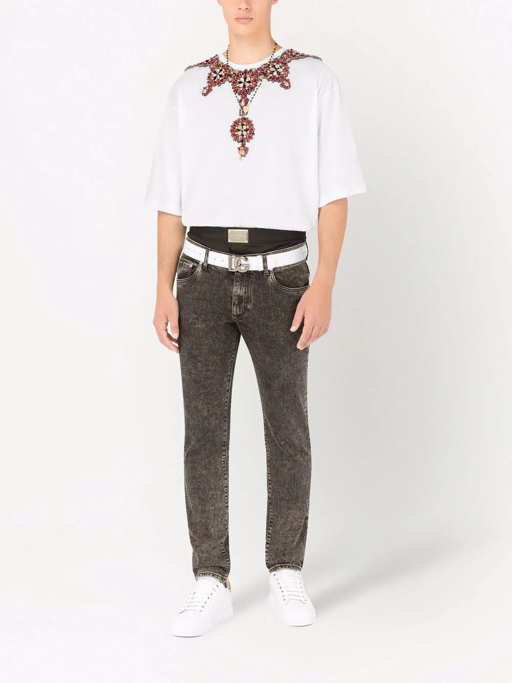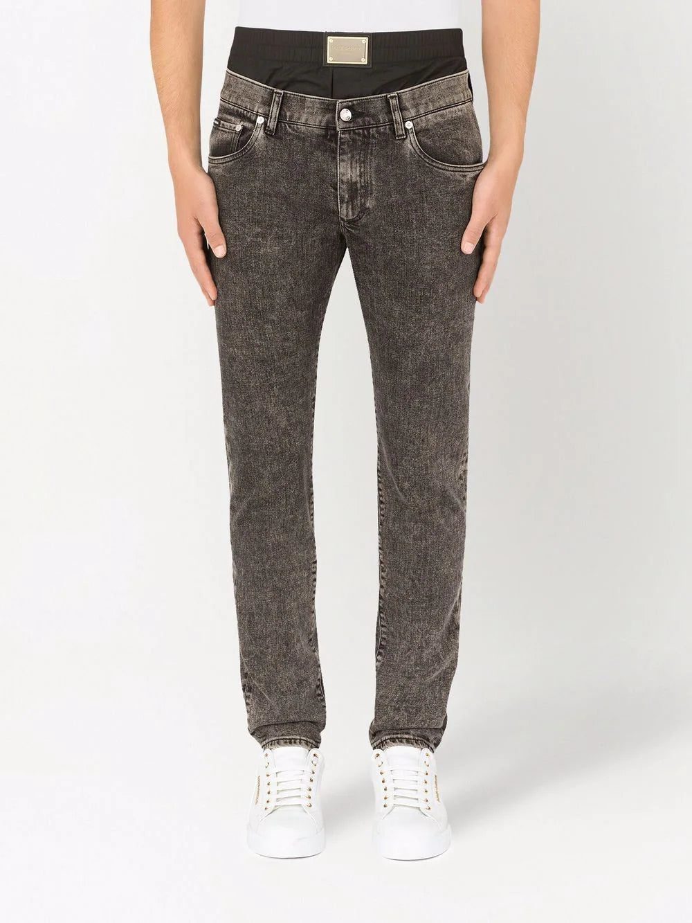 Dolce & Gabbana layered-waistband slim fit jeans
