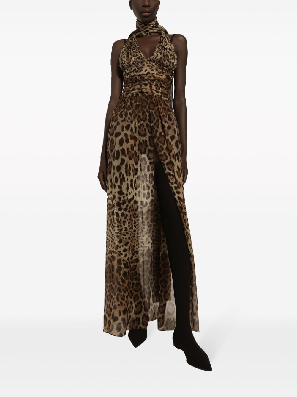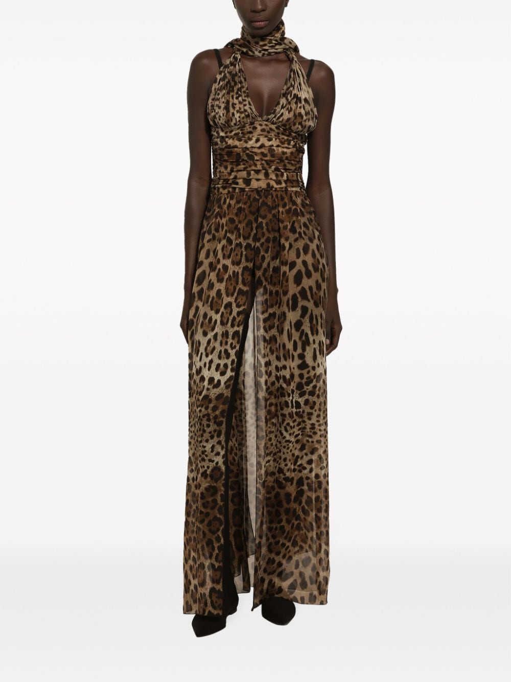 Dolce & Gabbana leopard-print halterneck silk gown