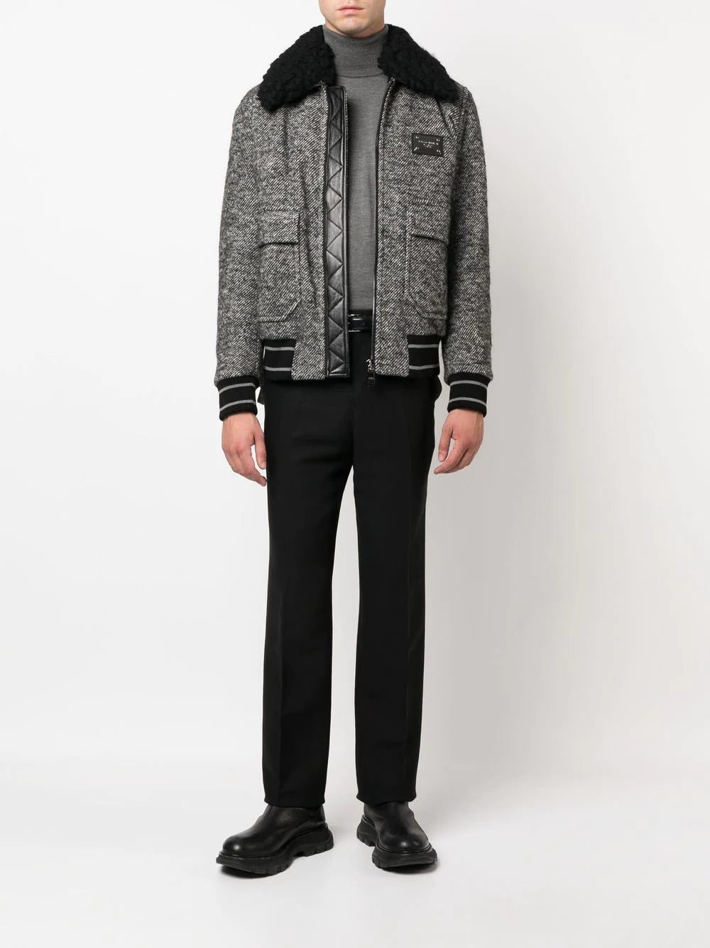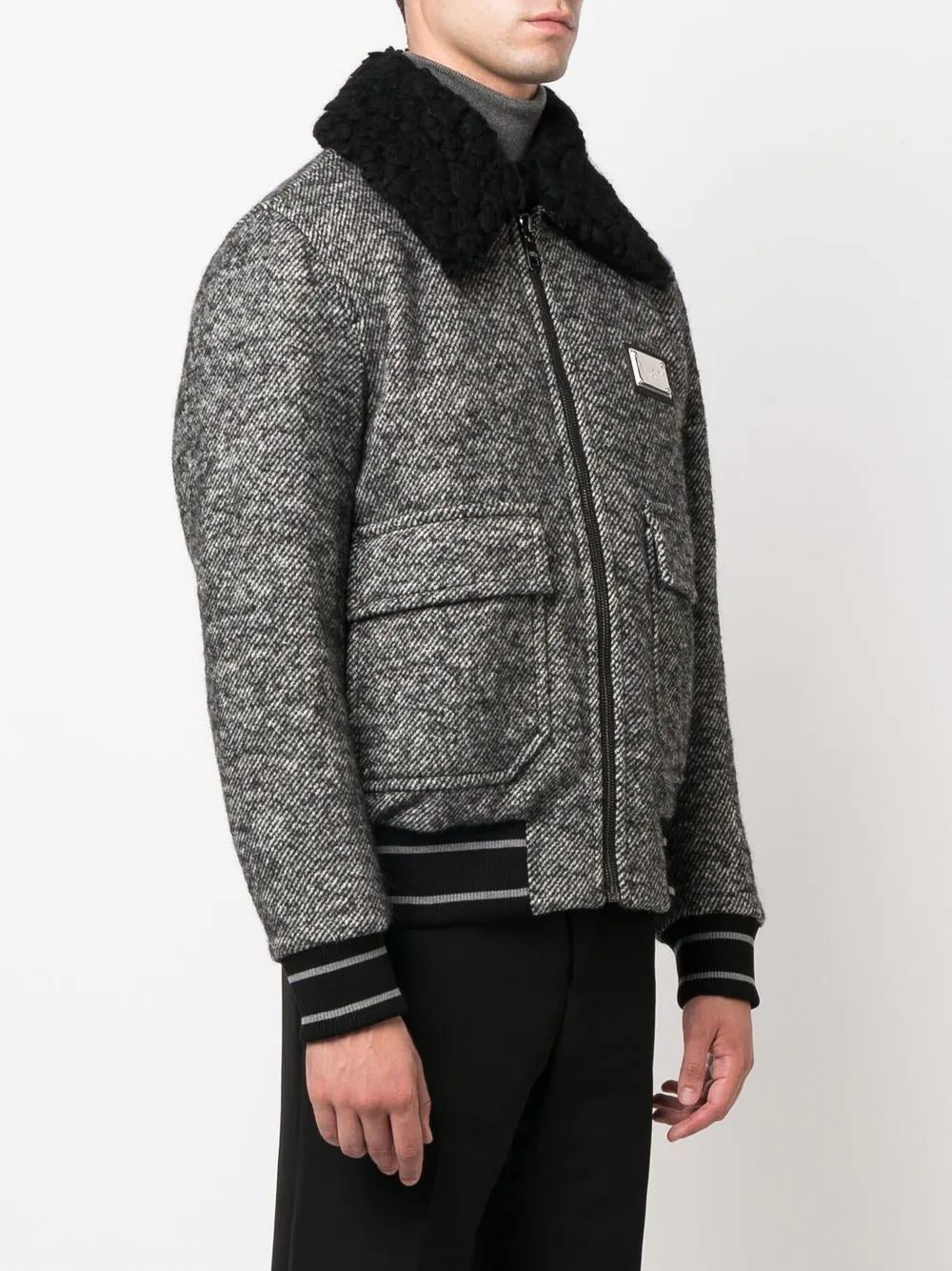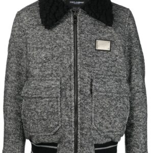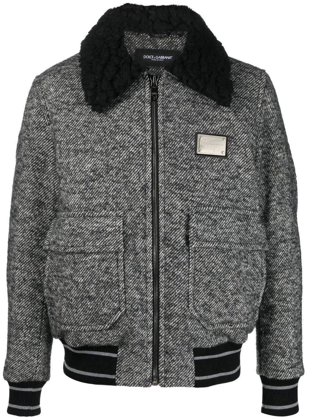 Dolce & Gabbana logo-plaque tweed bomber jacket