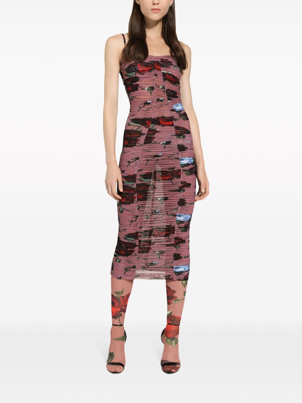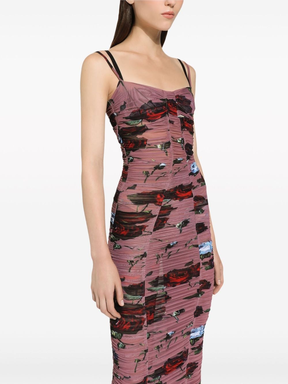 Dolce & Gabbana Rose-print ruched dress