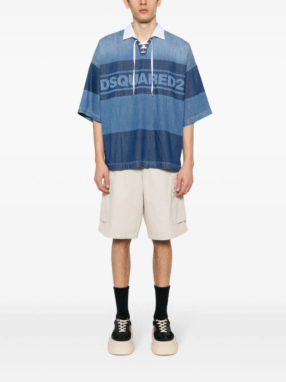 DSQUARED2 logo-print denim polo shirt