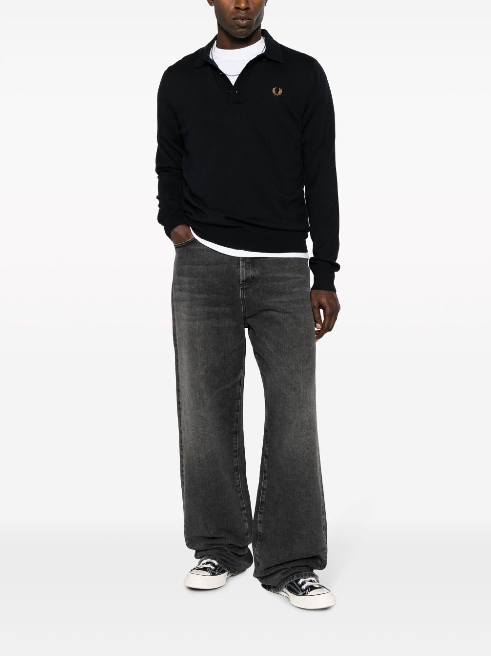 Fred Perry logo-embroidered long-sleeve polo shirt