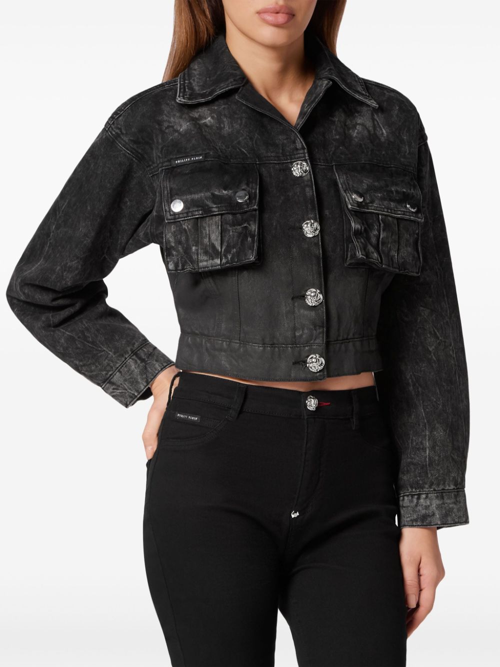 Philipp Plein drop-shoulder cropped denim jacket