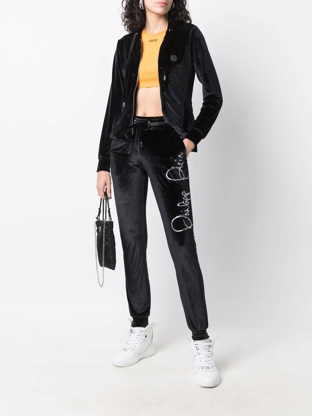 Philipp Plein logo-embellished velvet tracksuit