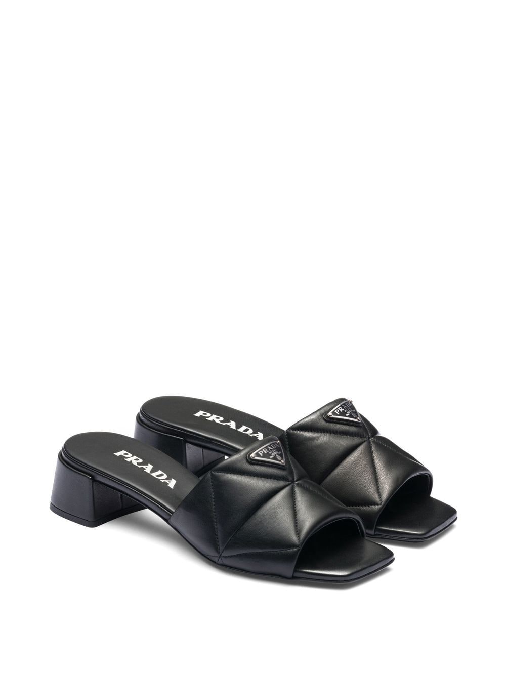 Prada enamel triangle-logo velvet slides