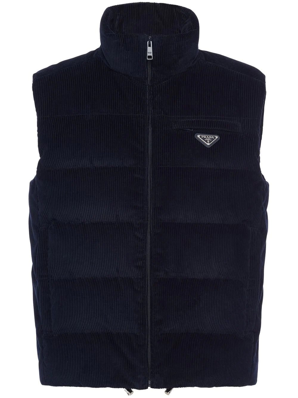 Prada logo-patch padded corduroy gilet