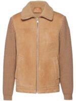 Prada logo-patch shearling zip-up jacket