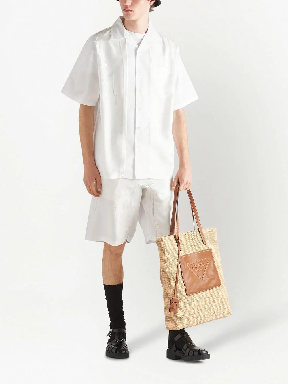 Prada panelled cotton bowling shirt