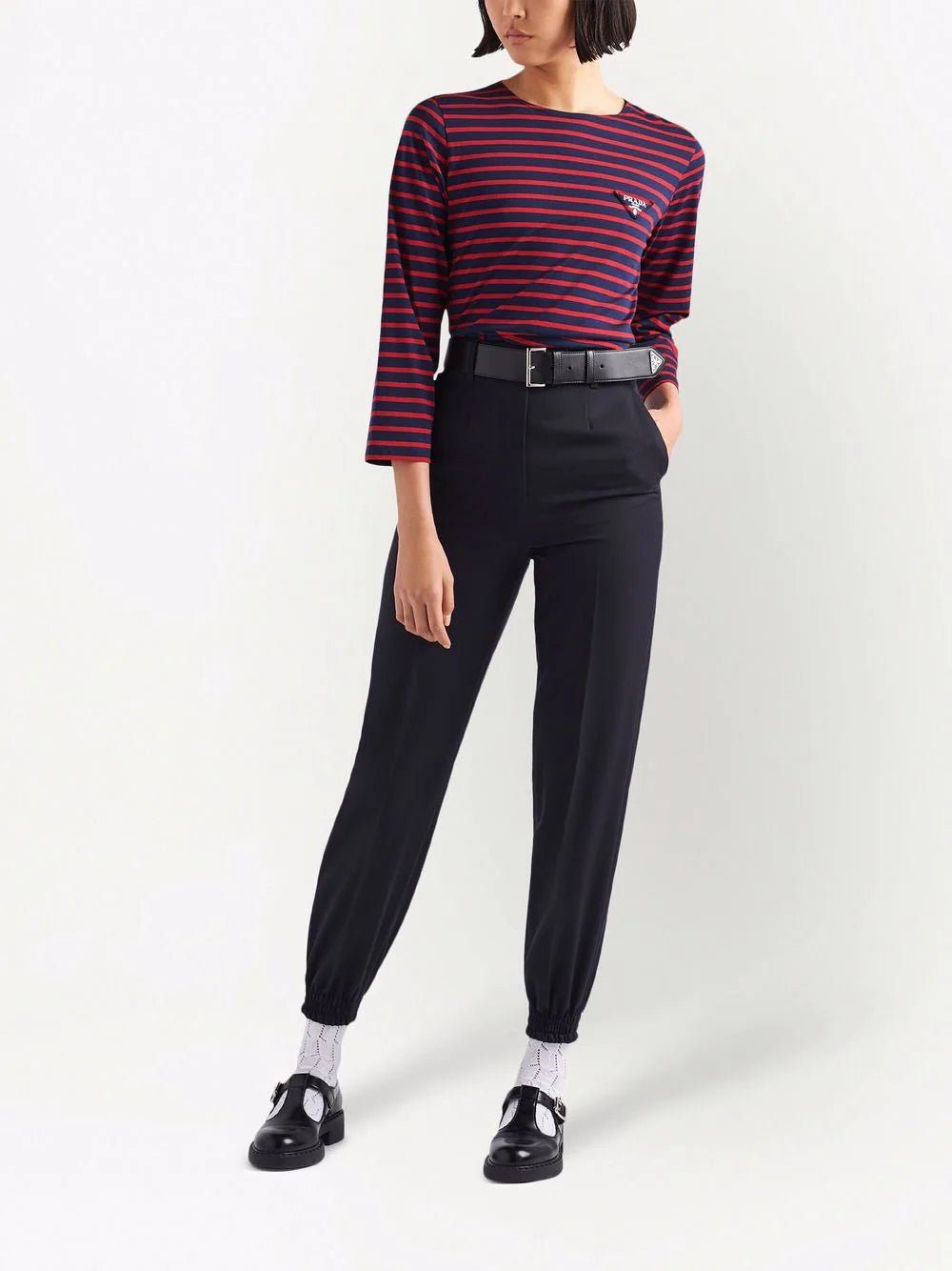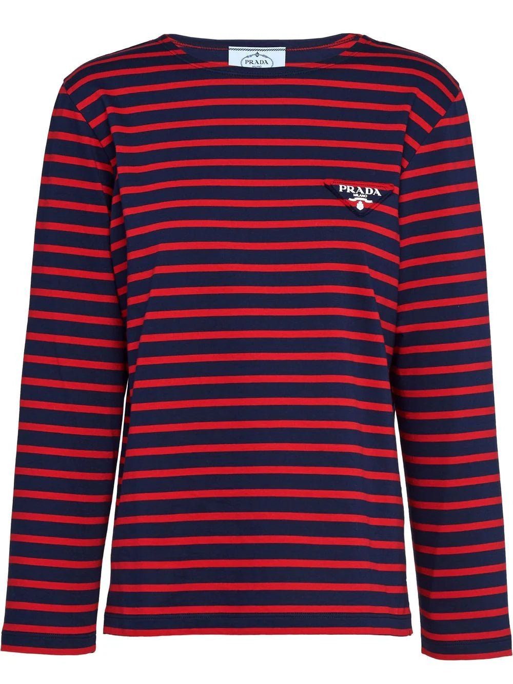 Prada triangle-logo striped long-sleeved T-shirt
